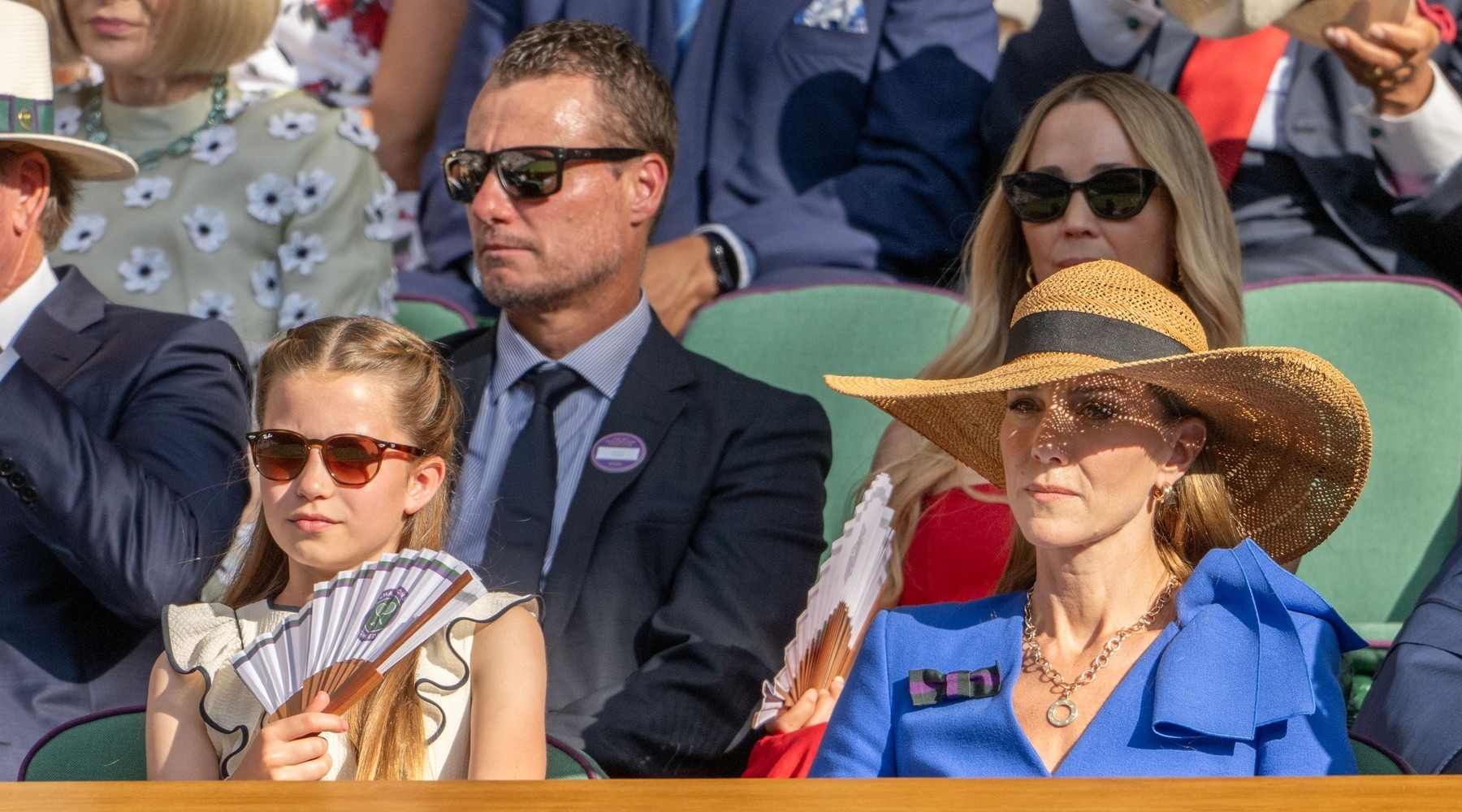 Pentru a face față temperaturilor ridicate (29 de grade Celsius la ora meciului), prințesa Charlotte a apelat la un evantai. Ba chiar a ajutat-o și pe mama ei să se răcorească, până când a fost rugată să înceteze.